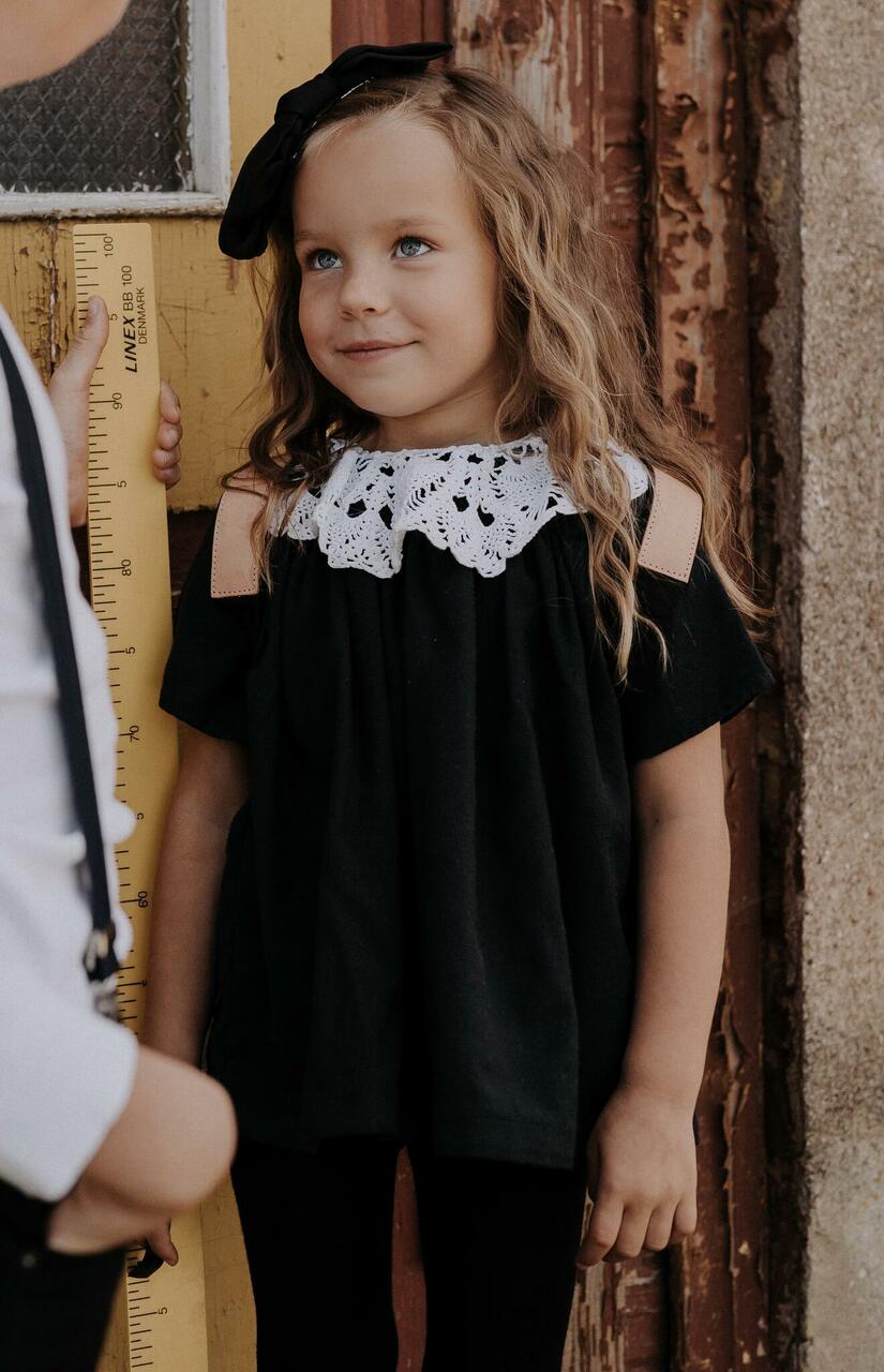 See väike piiga sai endale oma väikese tüdruku väikese musta kleidi. Igal neiul vōiks olla oma must kleit, kuid see ei tähenda, et emme riidekapis enam käima ei peaks.